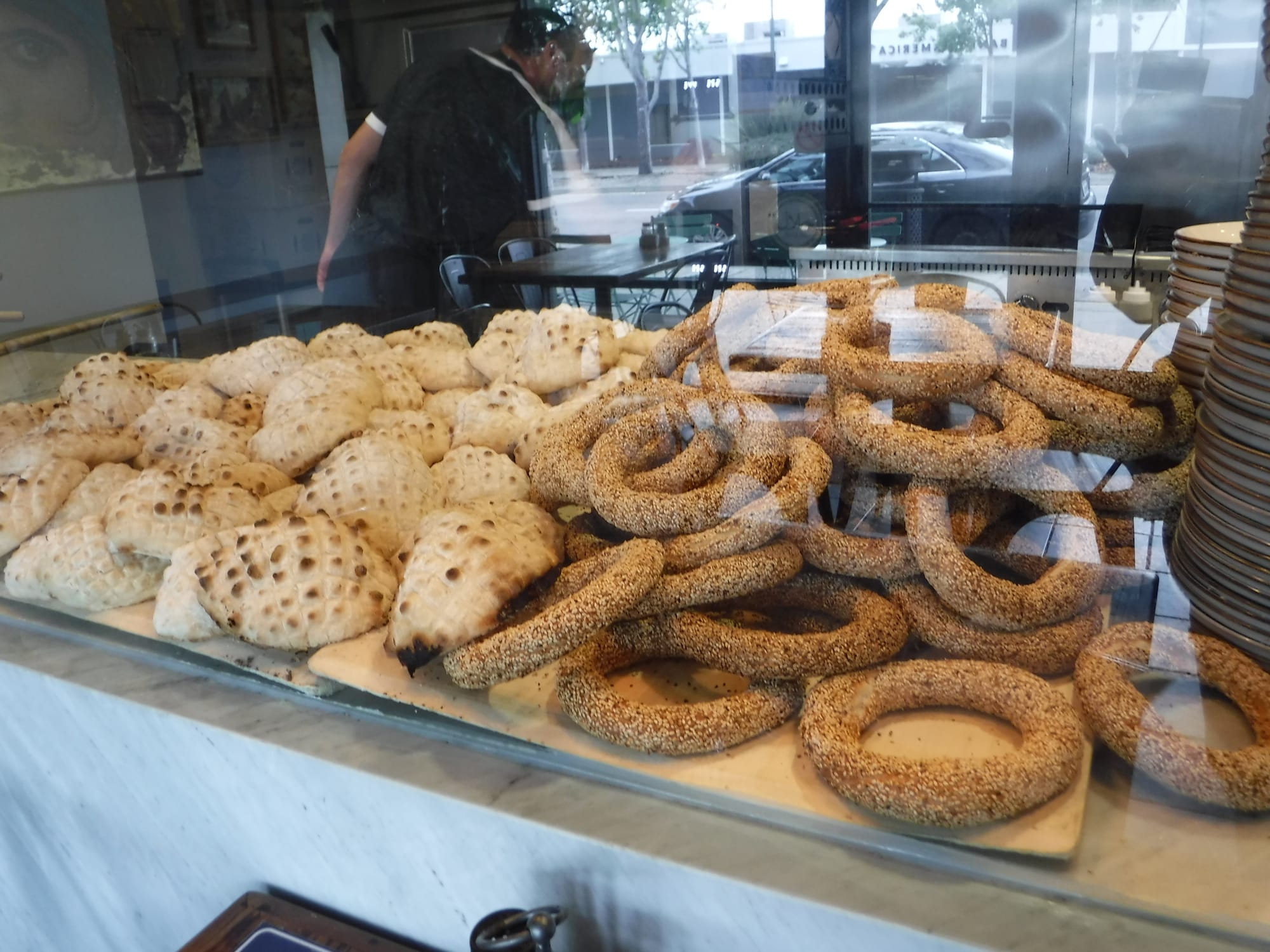 on a bit of a low-energy monday morning, spirits were noticeably lively inside welcoming simurgh bakery and cafe in emeryville, as customers at cafe tables tucked into huge and hearty turkish breakfast plates and others ordered bags of specialty breads (in oven-fresh piles at the counter), house-made jams, dolmas and baklava to go.