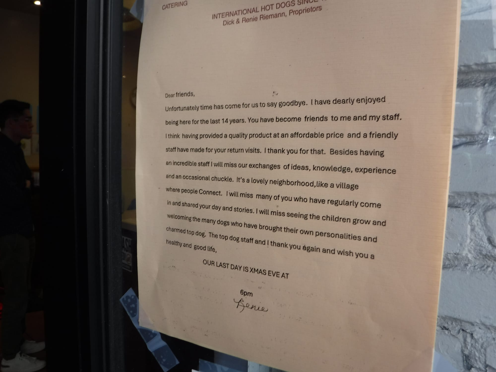 the lakeshore location's posted good-bye note from owners richard and irene riemann was touching and true. "i think having provided a quality product at an affordable price and a friendly staff have made for your return visits. i thank you for that," says the note.