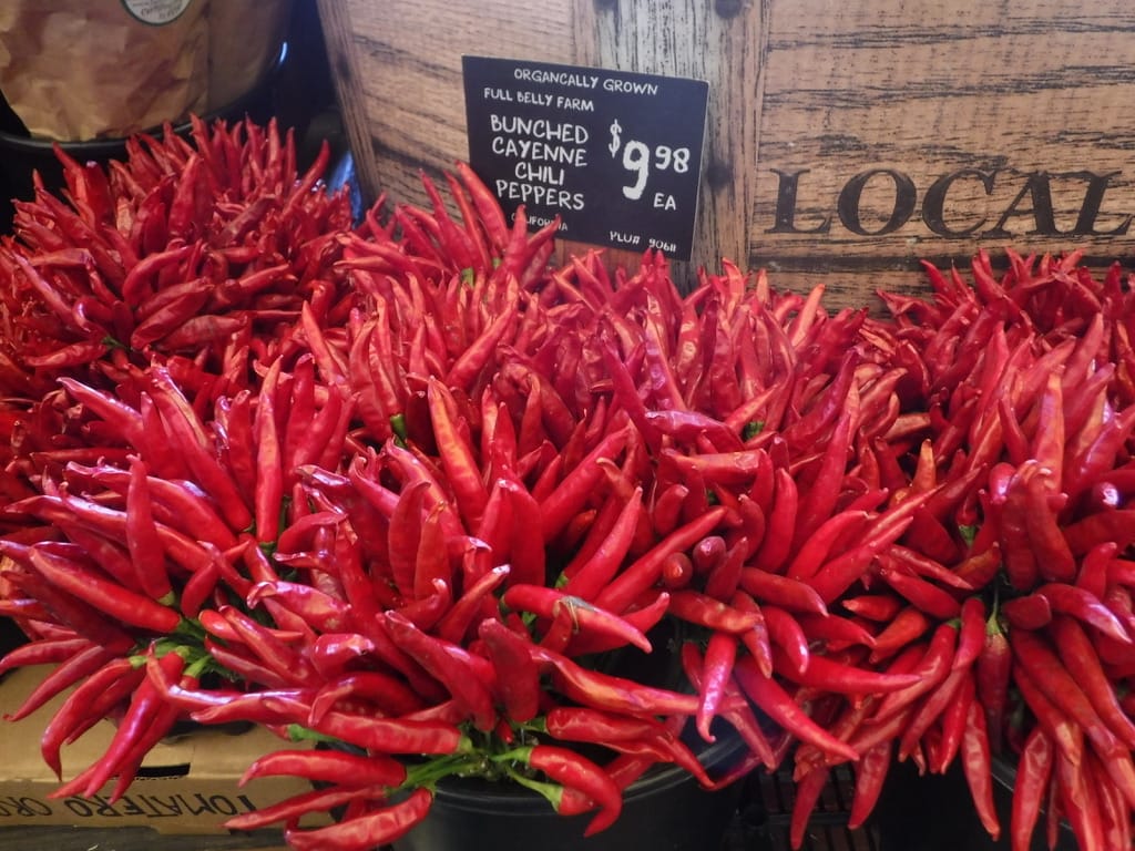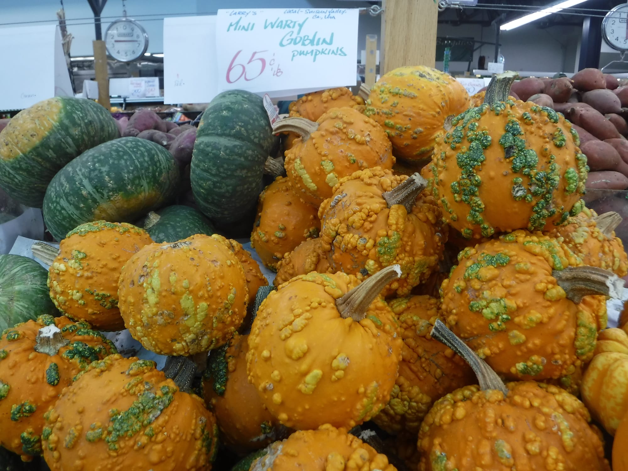 spooooky fall produce at the monterey market and berkeley bowl west, including buddha's hand, warty goblin pumpkins and cayenne pepper bouquets. photos berkeley eats.