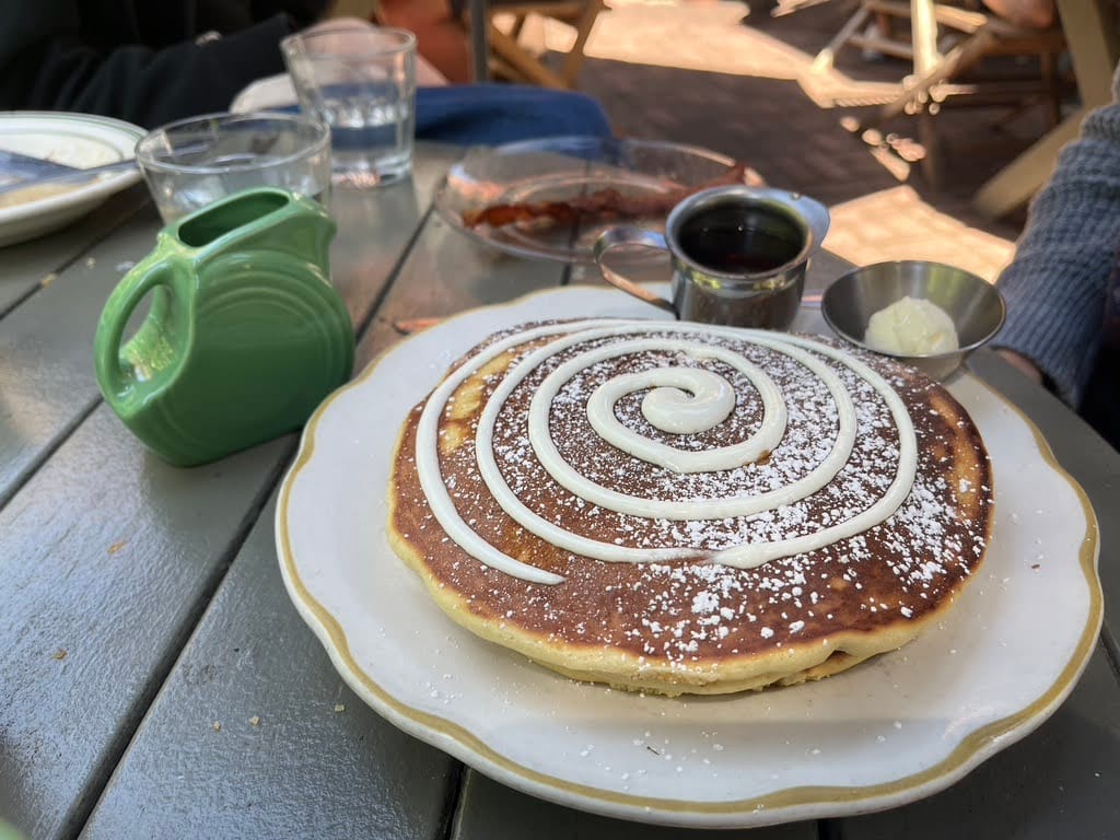 outdoor date night at jupiter. photo credit berkeley eats.cheeseburger, fries and a shake at smokehouse. photo credit berkeley eats.rose garden seating at anja's. photo credit berkeley eats.creme fraiche pancakes at la note. photo credit berkeley eats.