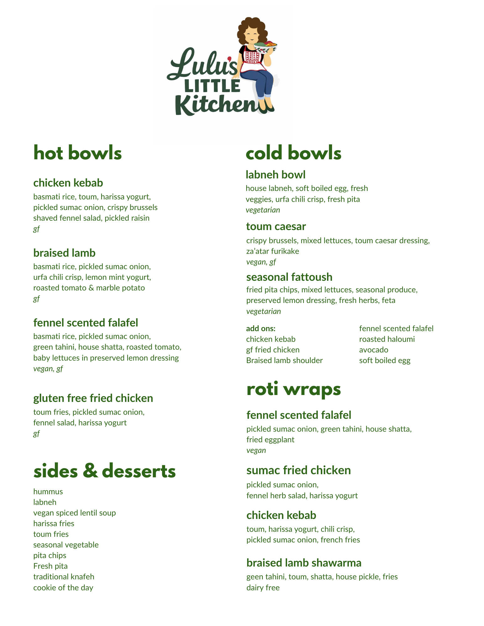albany destination california-palestinian restaurant lulu on solano from chef mona leena is reformatting into new, counter-service concept lulu's little kichen, after a final day of full service for the restaurant on january 31.