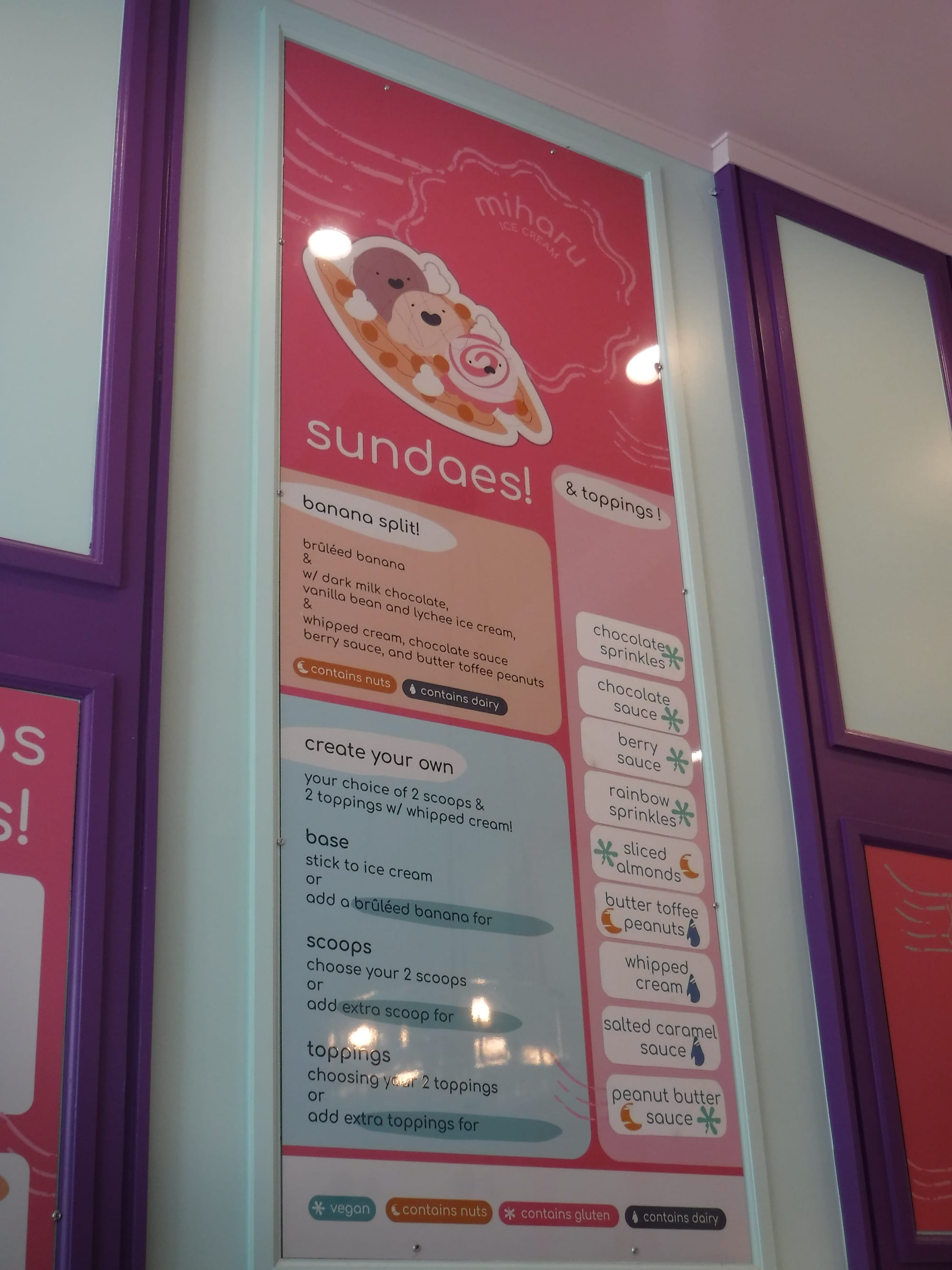 opened first at 1951 telegraph avenue in oakland in 2023 (after operating for a spell from a cloud kitchen during the pandemic), miharu features ice cream from co-owner jessica mertens, who is a quarter japanese ('miharu' means beautiful spring in that language, and is also her middle name) and front-of-house management from second co-owner dipen pattni, whose heritage is from gujarat in india but who was raised in tanzania.