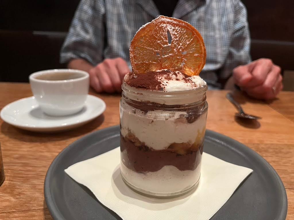 or...check out what the chef has chosen to layer up for the night’s parfait. (who doesn’t love a parfait?) our version stacked pound cake soaked in rum, cara cara orange, whipped cream infused with vanilla and orange blossom, and cocoa nibs in a glass jar, a spoonful through which was meant to mirror the flavors of an italian fiesta snack cake. (spoiler: it was successful.)