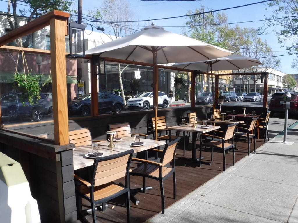 the fourth street shopping district's al fresco dining options include zut! , iyasare , cafe m and dumpling time . photo credit berkeley eats .