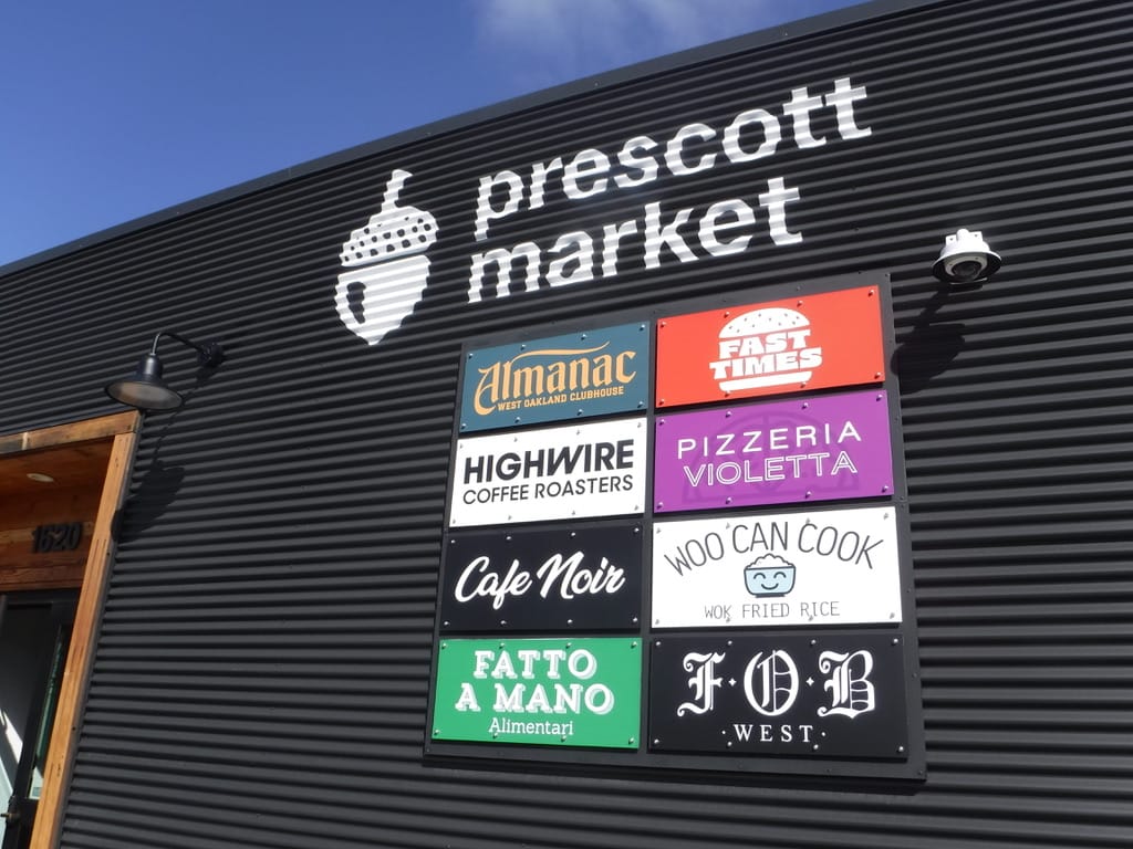 west oakland's stylish prescott market features roomy, family-friendly seating areas both indoors and out. photo credit berkeley eats . nick's pizza & bakery