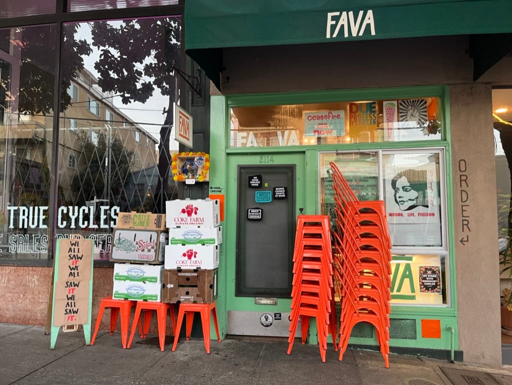 sidewalk seats stacked up outside berkeley's wee fava . photo credit berkeley eats . outside berkeley a few local favorites (there are many) outside berkeley's borders.