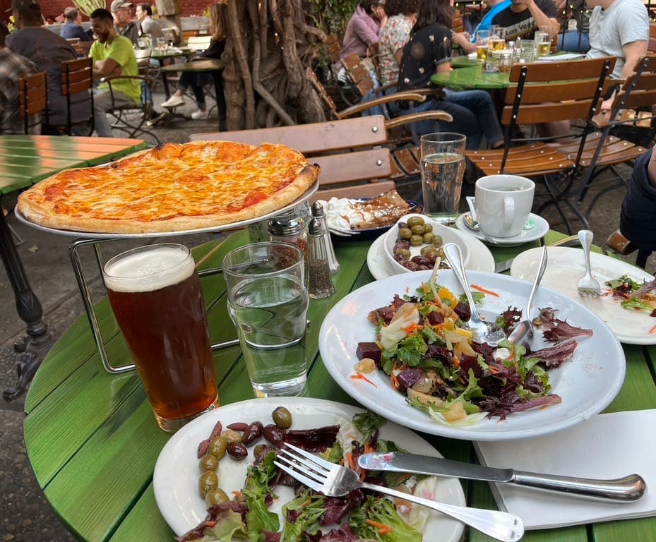 jupiter's casual downtown berkeley beer garden (good for groups) features pizza, salads, warm olives and beer. photo credit berkeley eats . donkey & goat